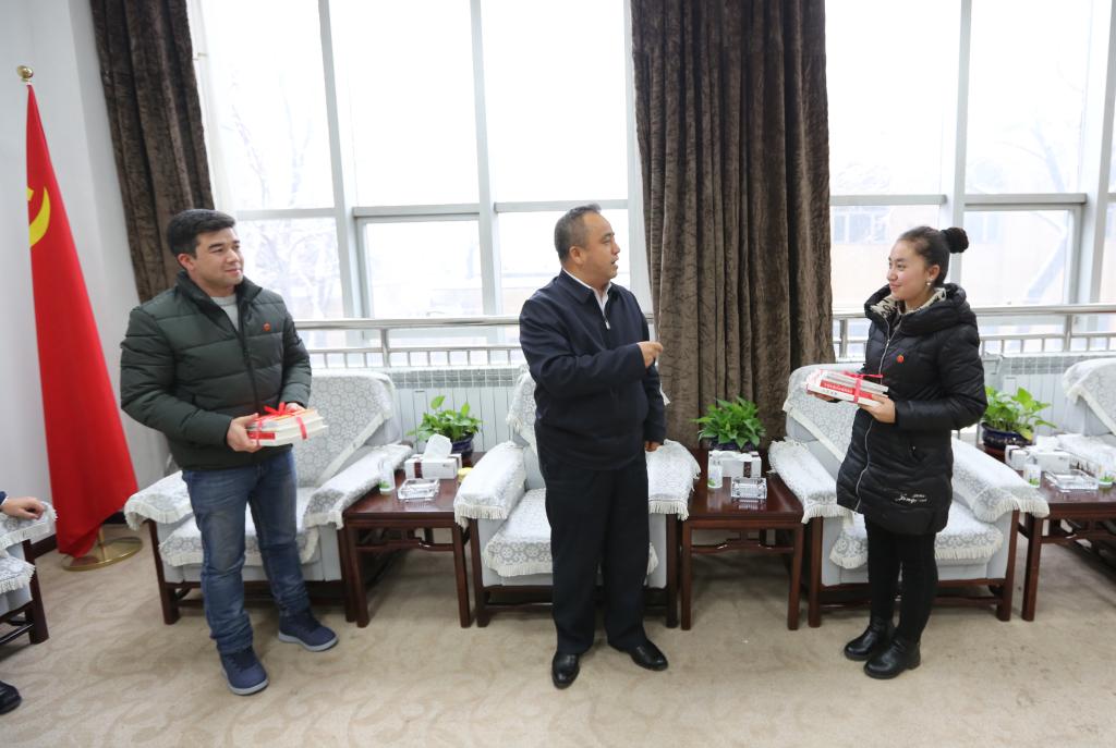 当天,艾尔肯·吐尼亚孜常委还看望了他 “三进两联一交友”结对学生信息科学与工程学院电信2014-2班的阿不力克木·吐尔逊同学和信息安全2015-2班的苏比努尔·阿不来提同学。他详细询问了两位同学的学习、生活状况,还向他们赠送了《习近平谈治国理政》、《习近平的七年知青岁月》等书籍,他要求两位同学在认真阅读后要写出读书笔记与他分享。他叮嘱两位同学要努力学习,把老师、学校对他们的期望转化为自觉行动的动力,做到思想好、学习好、团结好、形象好、身体好,起到优秀学生的表率作用。(编辑:刘梦雯;供稿:宣传部;摄影:朱旗)